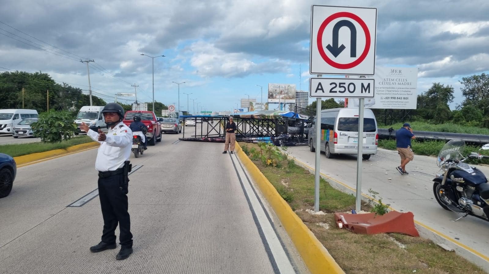 Cancún (Raimon Rosado).- Debido a los daños materiales que causó el desprendimiento de dos anuncios espectaculares en el boulevard Luis Donaldo Colosio por los fuertes vientos del pasado lunes por el Frente Frío 32, el Ayuntamiento de Benito Juárez sancionará con unas 200 sumas equivalentes a 21,714 pesos a los propietarios de las estructuras publicitarias colapsadas por no asegurarlas bien.