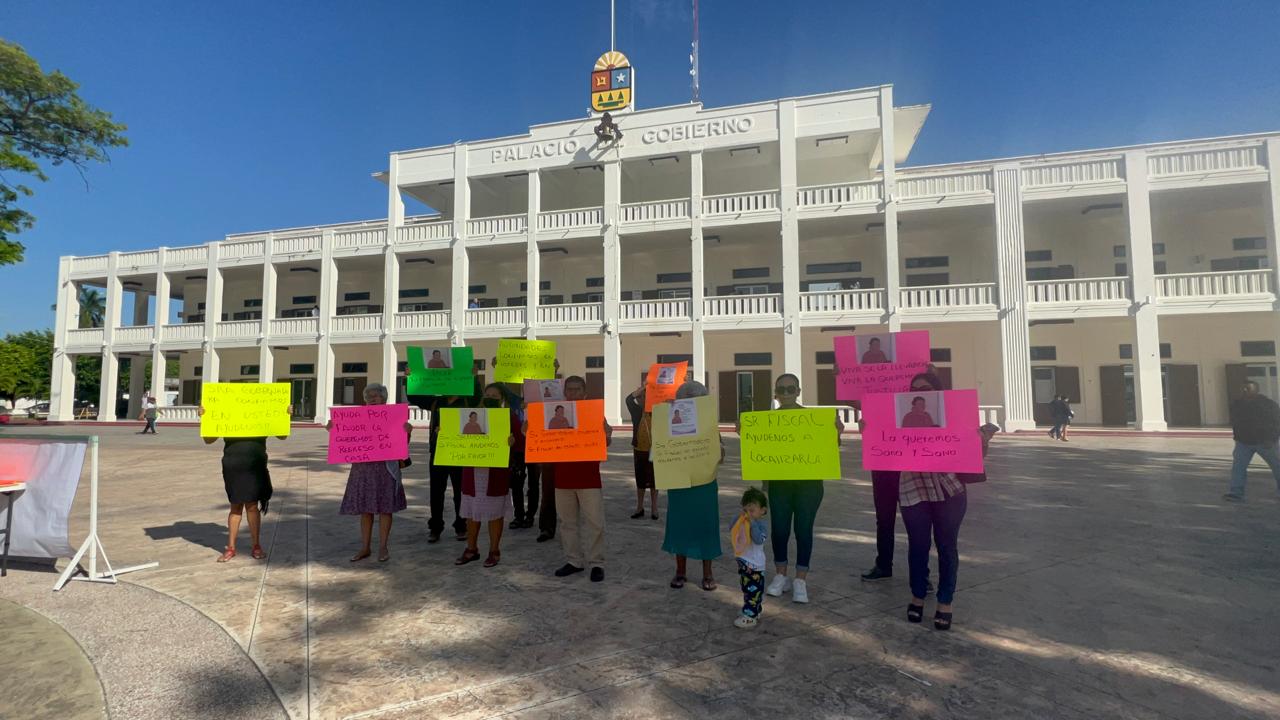 Chetumal (Julio Mena).- En un acto de desesperación y en busca de respuestas, los familiares de doña Emilia del Pilar López se congregaron en los bajos del Palacio de Gobierno de Quintana Roo en Othón P. Blanco.