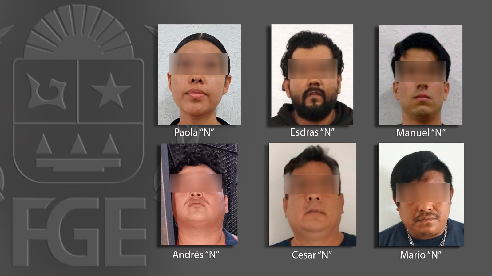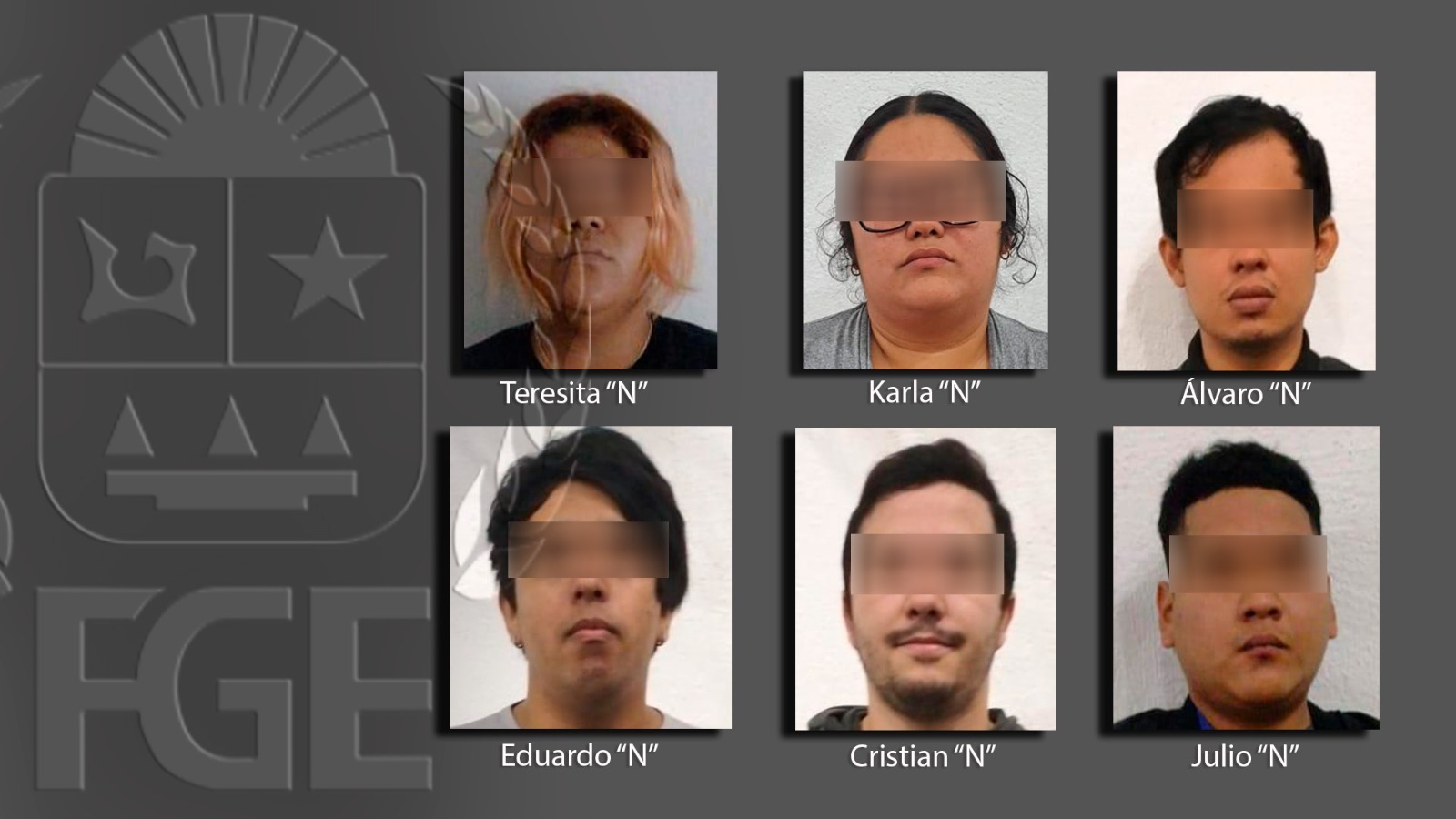 Las personas detenidas son Ingrid “N”, Ramiro “N”, Yefri “N”, Simón “N”, Julio “N”, Luis “N”, Jesús “N”, Jaqueline “N”, Jesús “N”, Ana “N”, Karla “N”, Luis “N”, Axcel “N”, Cristian “N”, Eduardo “N”, Álvaro “N”, Teresita “N”, Mario “N”, Cesar “N”, Andrés “N”, Manuel “N”, Paola “N” y Esdras “N”.