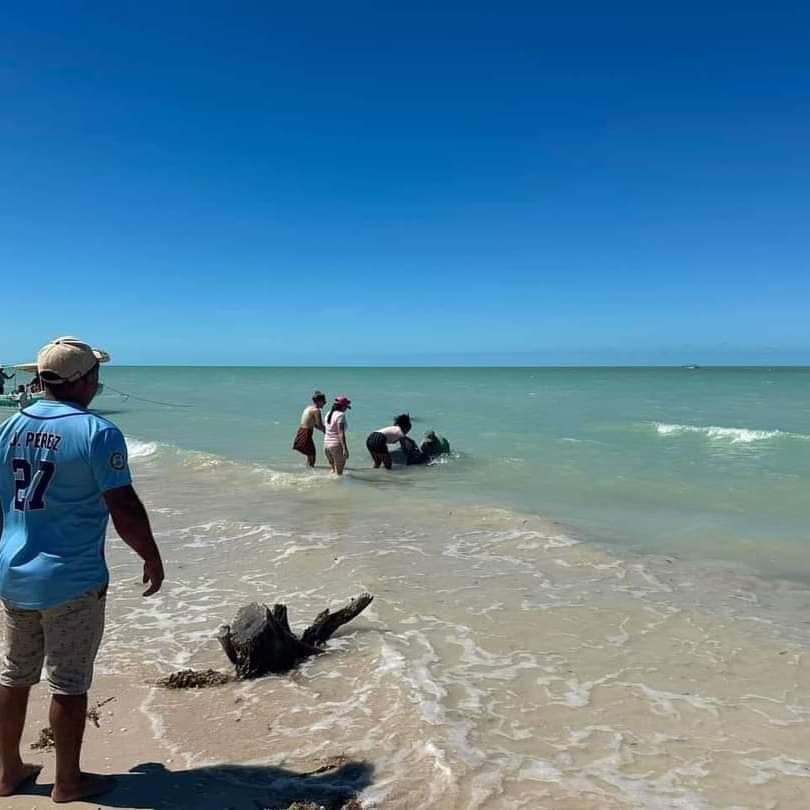Yuatán (Redacción).- En redes sociales se popularizan una serie de imágenes que captaron el recale de ballenas pilotos en Celestún, Yucatán.