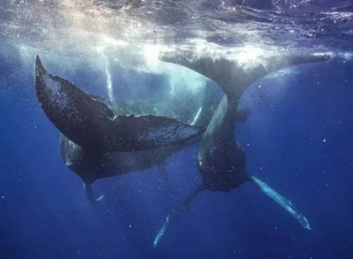 Captan a dos ballenas jorobadas macho teniendo relaciones