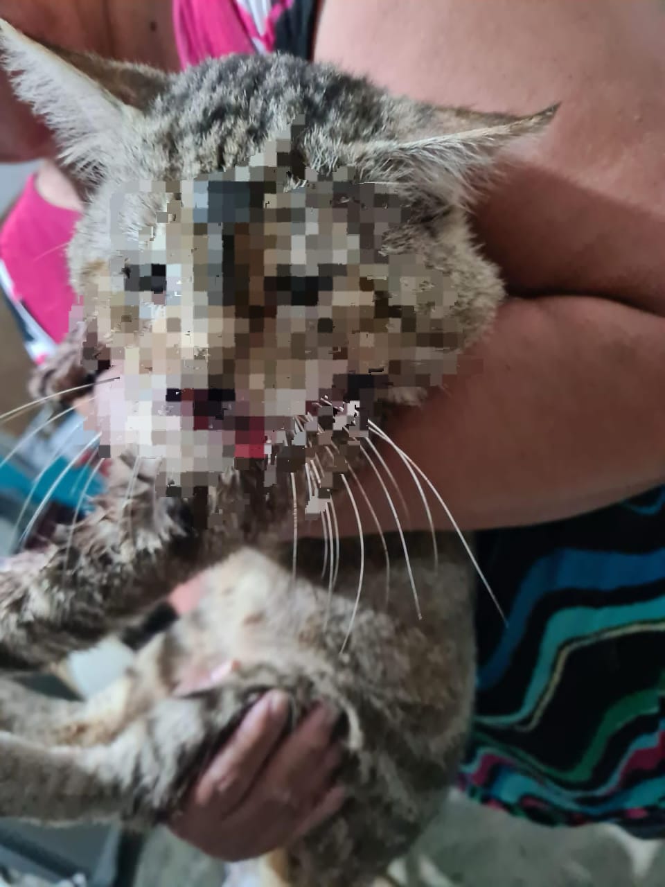 Indicaron que a pesar de la gravedad de la lesión, el gatito logró sobrevivir, pero la atención veterinaria se retrasó debido a la dificultad para atraparlo, ya que el dolor lo volvía esquivo.