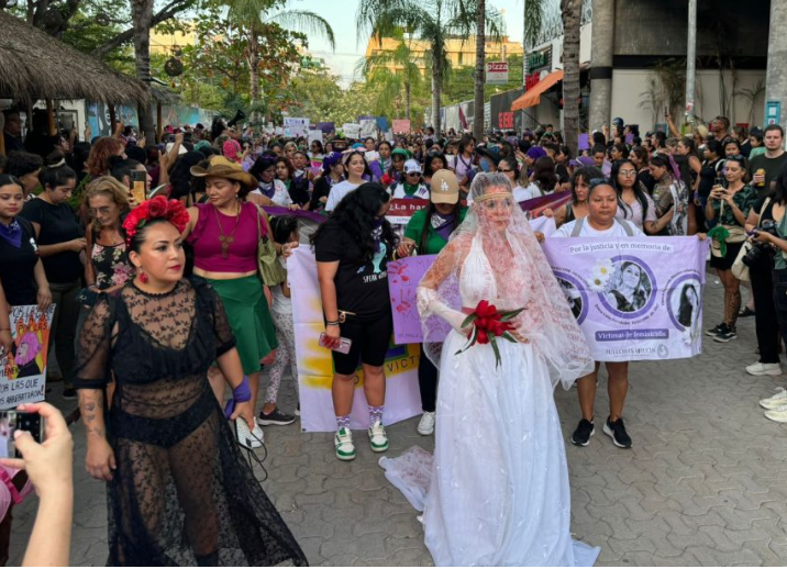 Feministas marchan en Quintana Roo en conmemoración del 8M