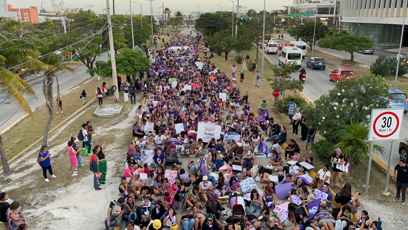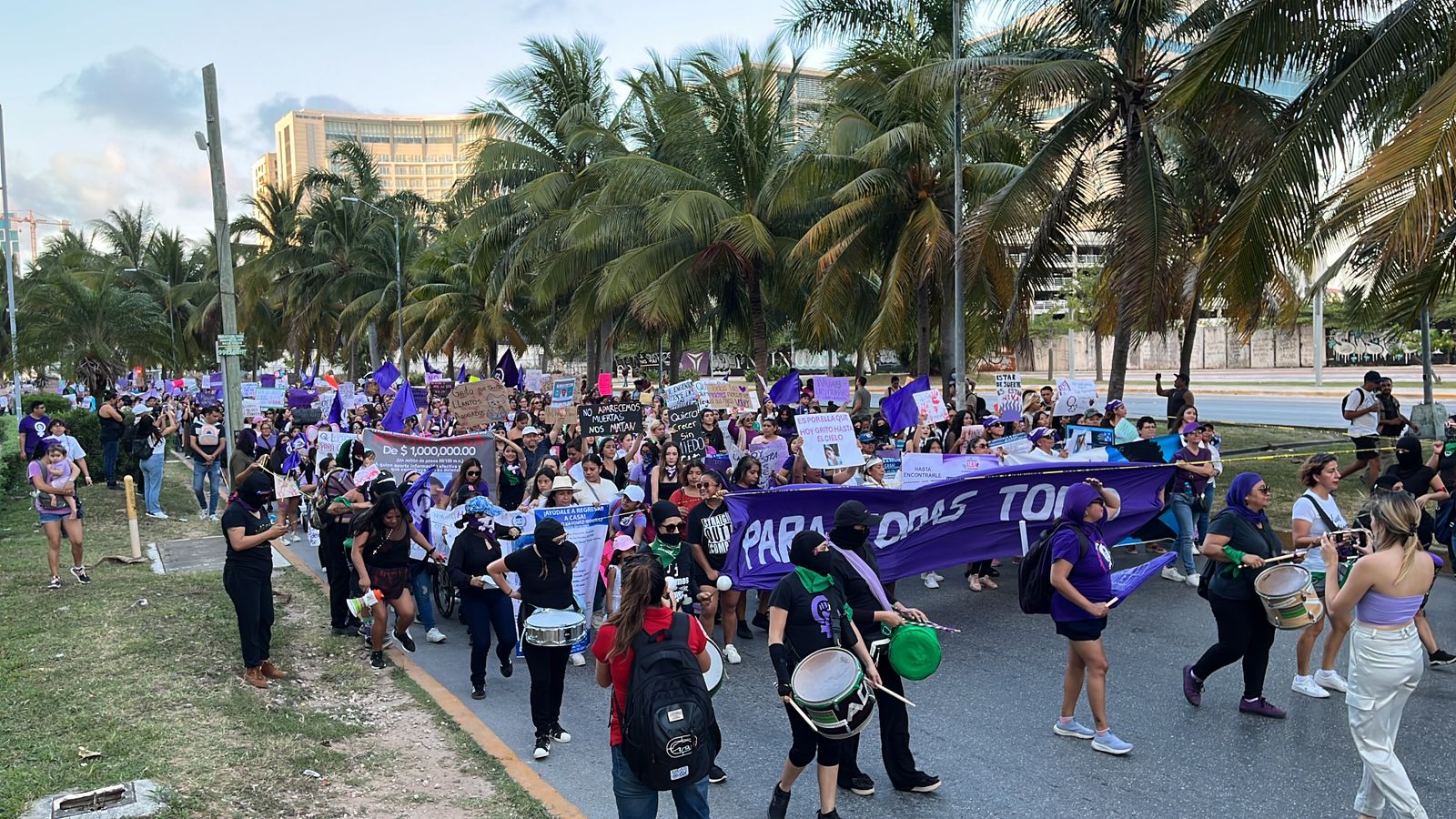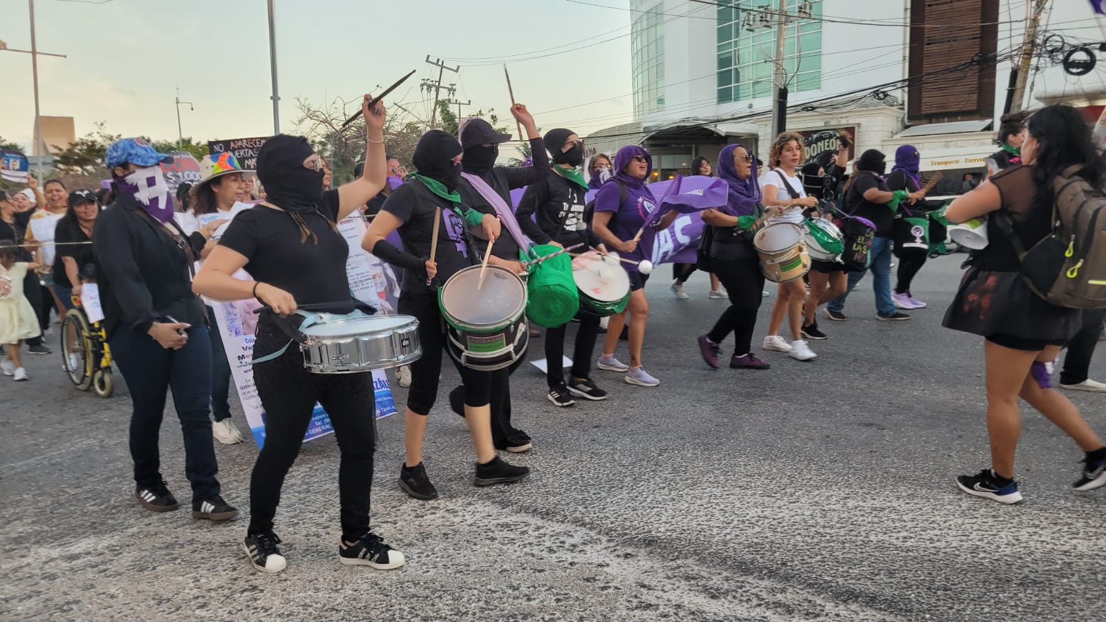 En el caso de Cancún, las mujeres iniciaron su recorrido entrada la tarde desde el Malecón Tajamar, la mayoría vestidas de morado y distintivos verdes.