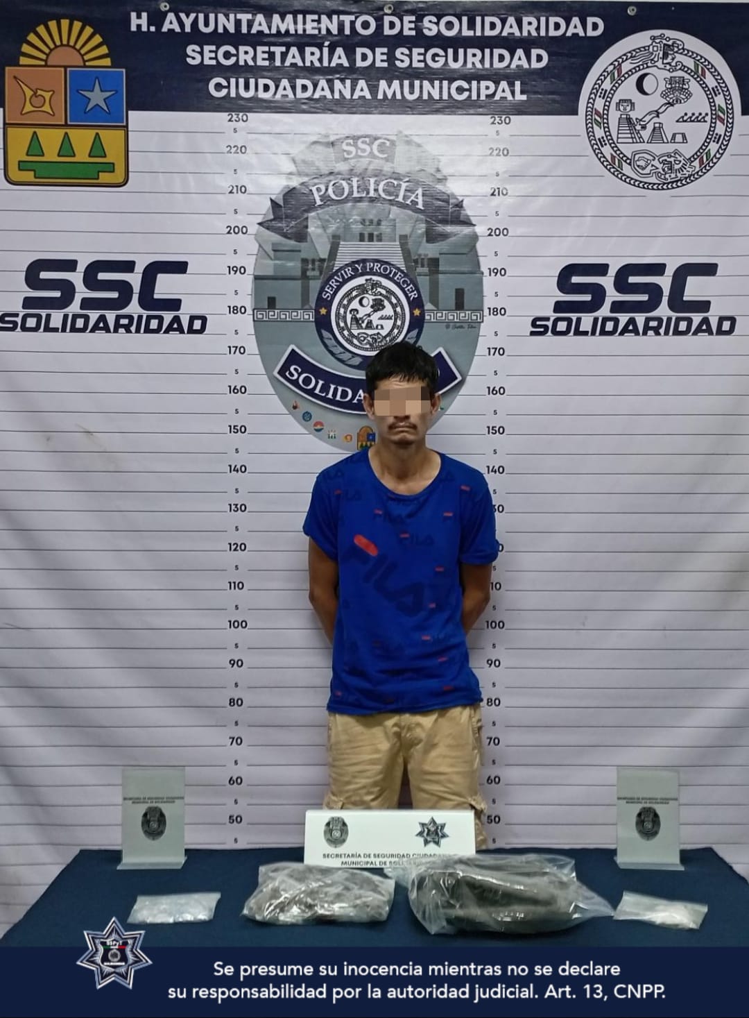 Playa del Carmen (Redacción).- La Policía Municipal de Solidaridad aseguró a un masculino con más de 70 envoltorios con posibles drogas como cocaína, metanfetamina y marihuana en la colonia Colosio.