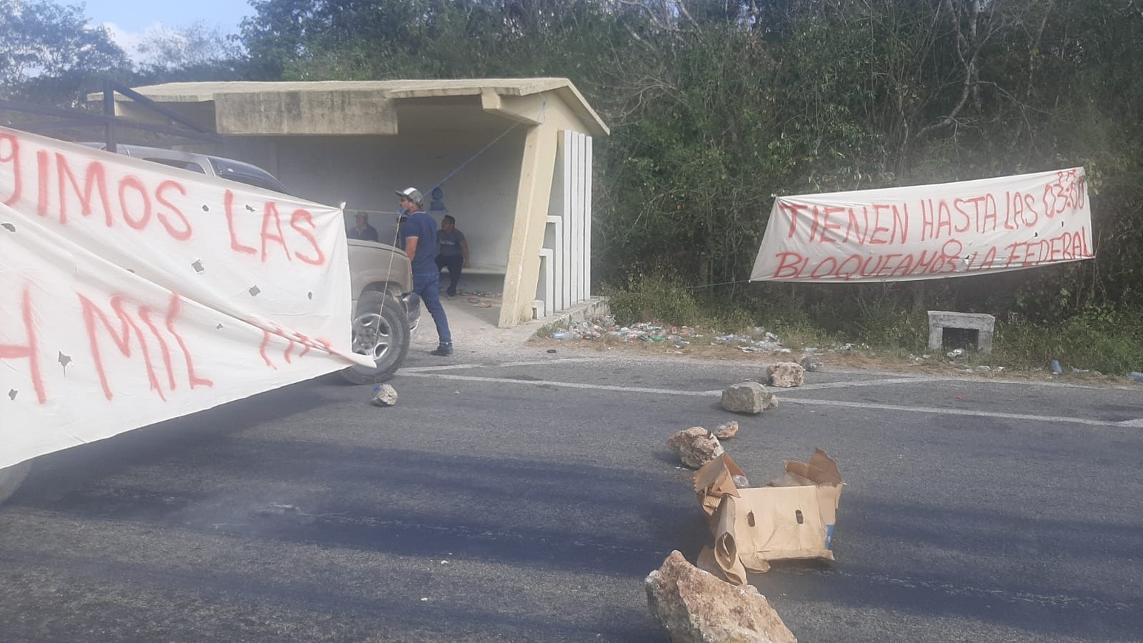 Felipe Carrillo Puerto (Redacción).- Ejidatarios que mantienen un bloqueo en los bancos que surten las obras del Tren Maya en demanda de la regulación de la tierra, suspendieron parcialmente sus acciones de protesta y dieron un plazo de 24 horas a la Federación para que resuelvan el pliego petitorio.