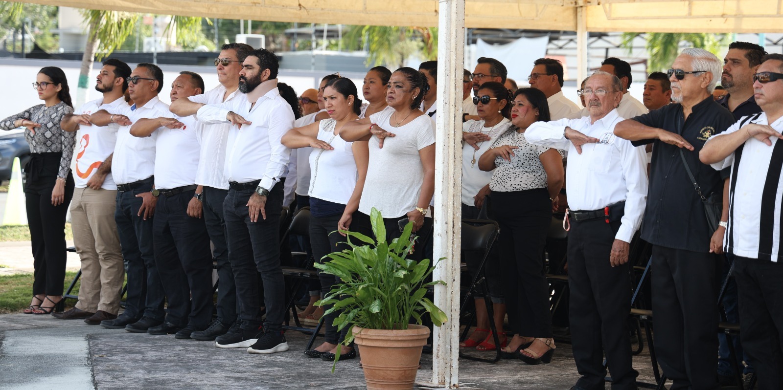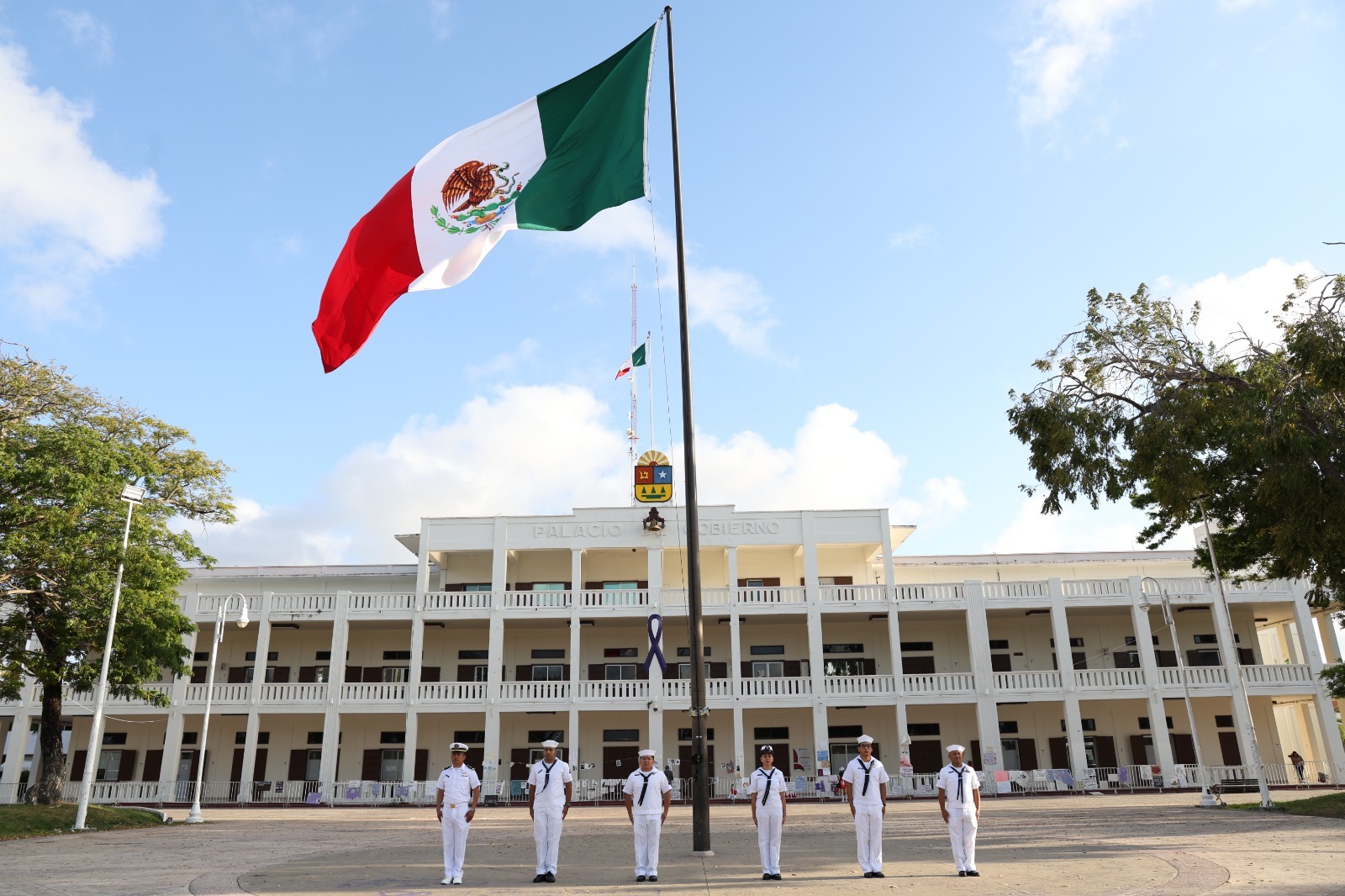 Antes de la ceremonia, elementos la 17 Zona Naval llevaron a cabo el izamiento de la Bandera Nacional Mexicana a toda asta, en la plaza cívica situada frente al Palacio de Gobierno.