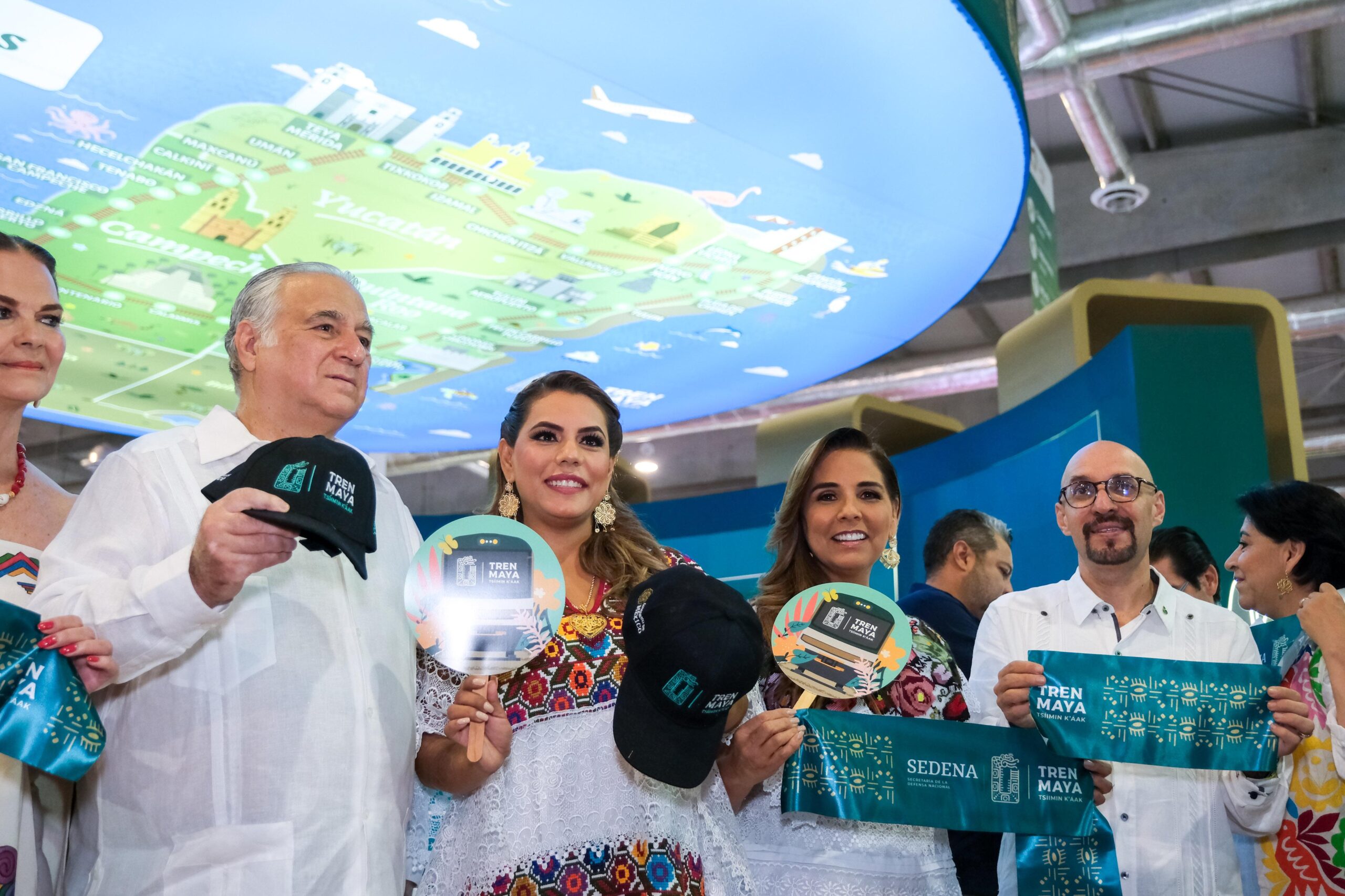 En la ceremonia inaugural del Pabellón del Caribe Mexicano acompañaron a la gobernadora Mara Lezama, el secretario estatal de Turismo, Bernardo Cueto Riestra, el director del Consejo de Promoción Turística de Quintana Roo, Andrés Martínez, 10 presidentas y presidentes municipales, así como directoras y directores de turismo de los municipios.