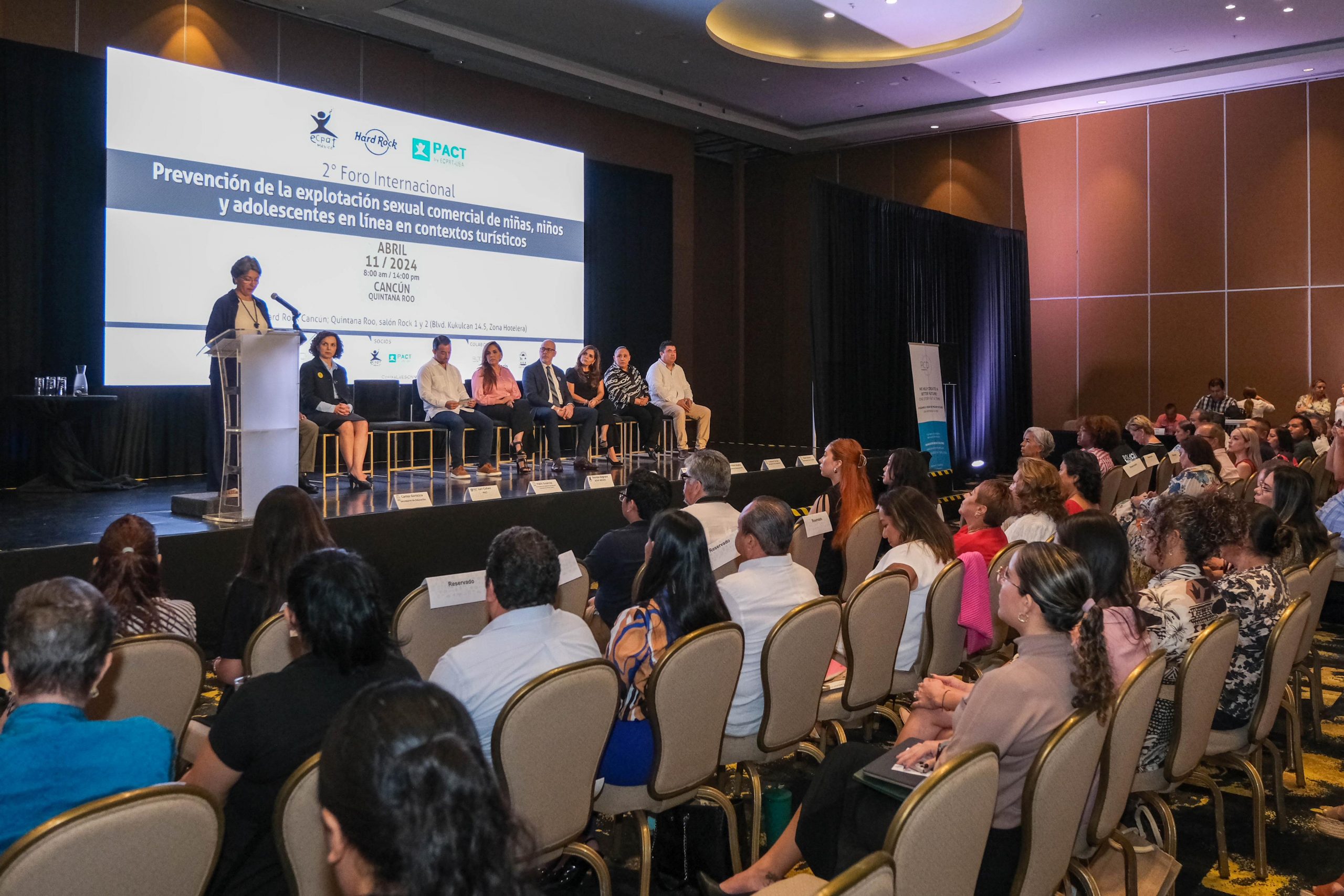 Al dirigirse a todos los asistentes y participantes del Foro Internacional, la gobernadora Mara Lezama expresó que la prevención, persecución y castigo de la explotación sexual de niñas, niños y adolescentes es un asunto prioritario para este gobierno y, afortunadamente, para muchas personas de la sociedad civil y la iniciativa privada.