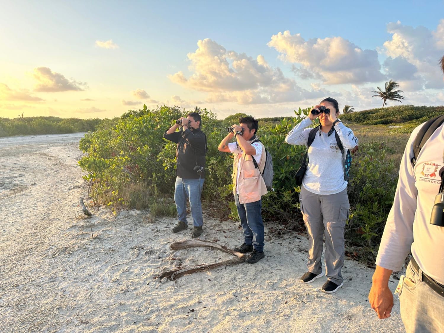 Cabe hacer mención, que en la última salida de observación se contó con la participación de Biólogos y Licenciados en Manejo de Recursos Naturales de CEA, además alumnas de la Licenciatura de Recursos Naturales de la UQROO, que realizan su servicio social en la FPMC.