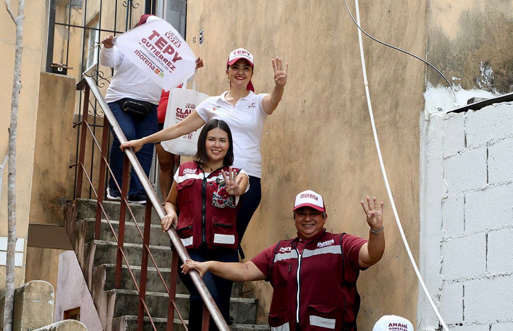 Anahí González junto a Estefanía Mercado candidata a la presidencia municipal de Solidaridad, Majo Osorio y Silvia Dzul, candidatas a la diputación local por el Distrito 10 y 12, respectivamente, visitó las colonias Luis Donaldo Colosio y Palmas I, donde dijo que, con el legado del gobierno humanista, se mantendrá la austeridad republicana, la disciplina financiera y fiscal.