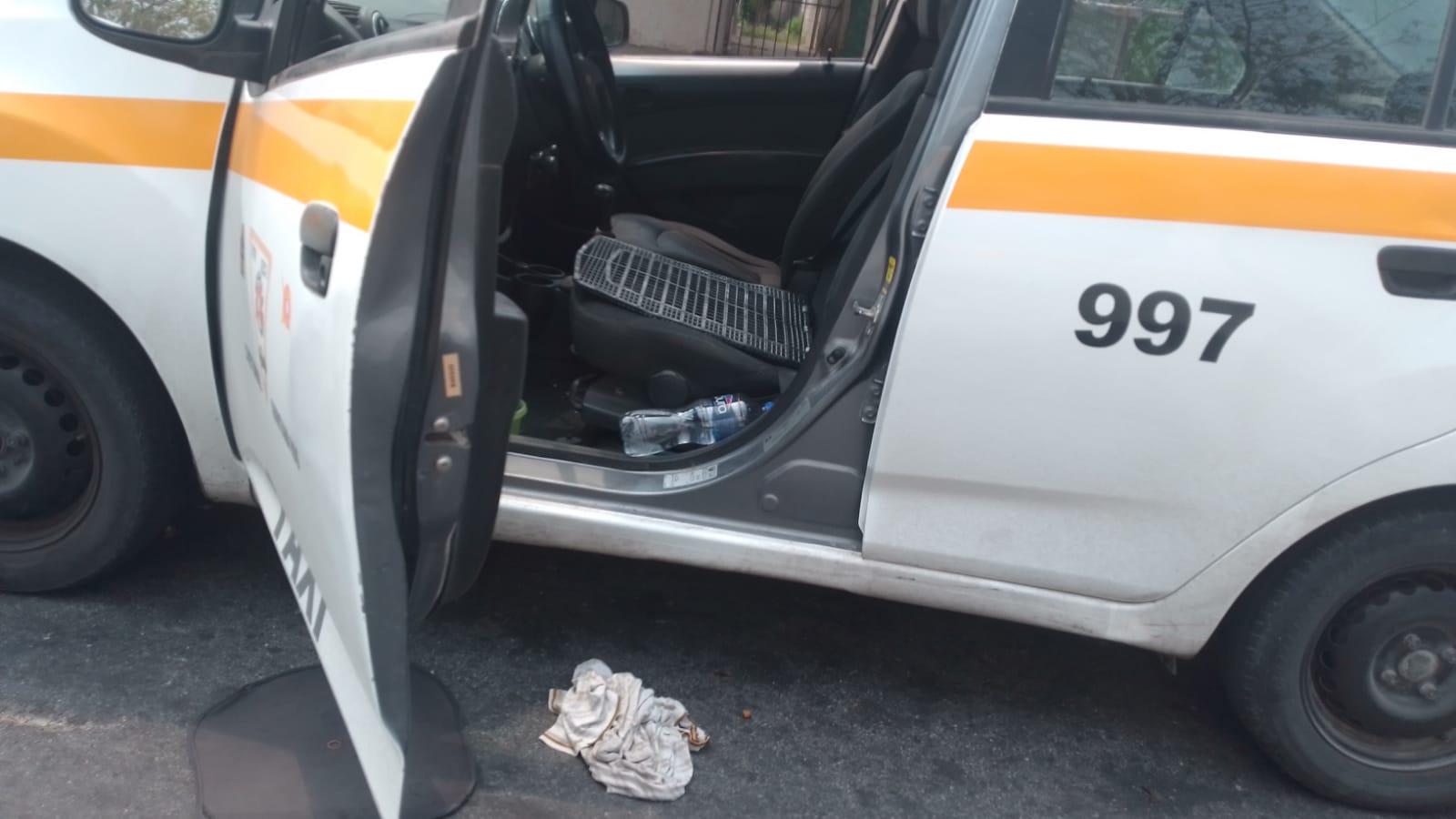 El incidente ocurrió específicamente en la calle Luis Manuel Sevilla, donde según testigos un automóvil tipo Sentra de color blanco, con vidrios polarizados, bloqueó el paso del taxista marcado con el número 997.